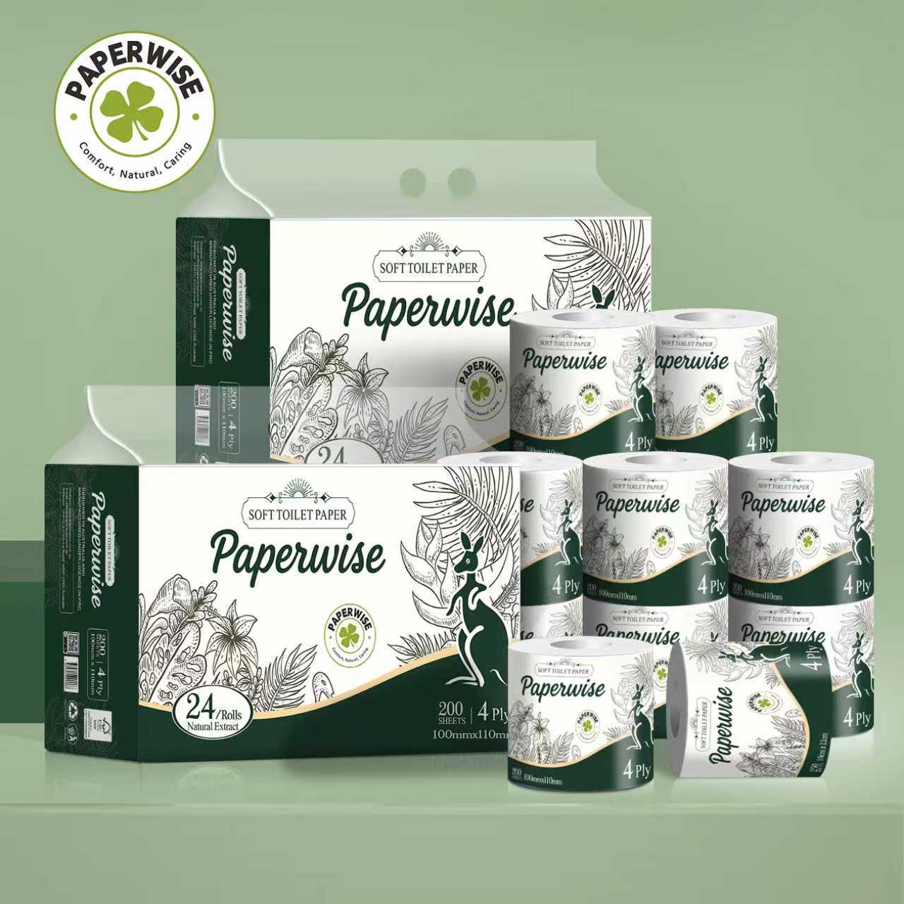 Elevate your everyday routine with our ultra-soft, ultra-strong 4-ply toilet paper. Crafted from 100% virgin pulp, each roll offers a perfect blend of plush comfort and reliable performance. Designed for those who value hygiene, quality, and indulgence in the smallest details.